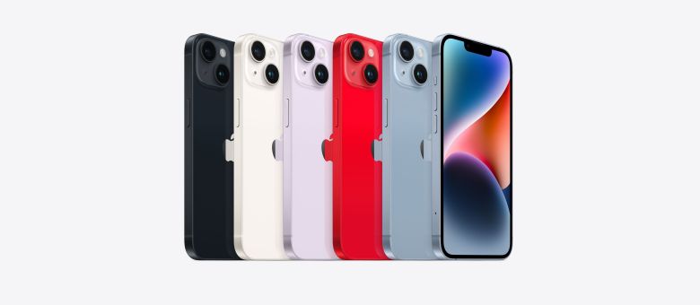 iPhone14 Plus机身三围是160.8*78.1*7.8毫米,重203克。和iPhone13Pro Max相比厚了0.15毫米,轻了35克,适合更多人拿来当主力机使用。目前有5款配色可供选择,分别为蓝、紫、红、午夜色和星光色,机身依旧是由玻璃背板和铝合金直角边框组成,屏幕盖板为更坚固耐用的未超瓷晶面板。